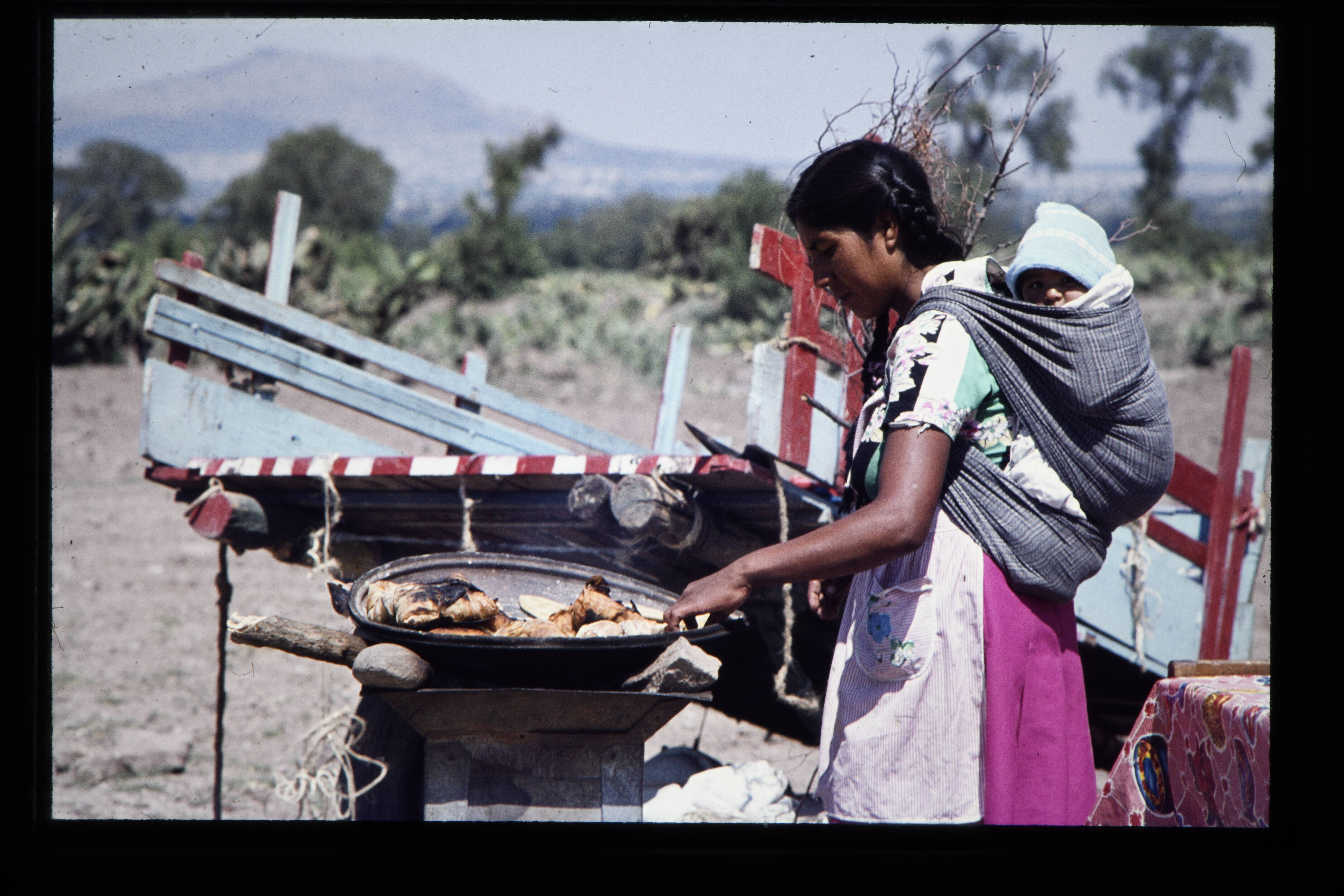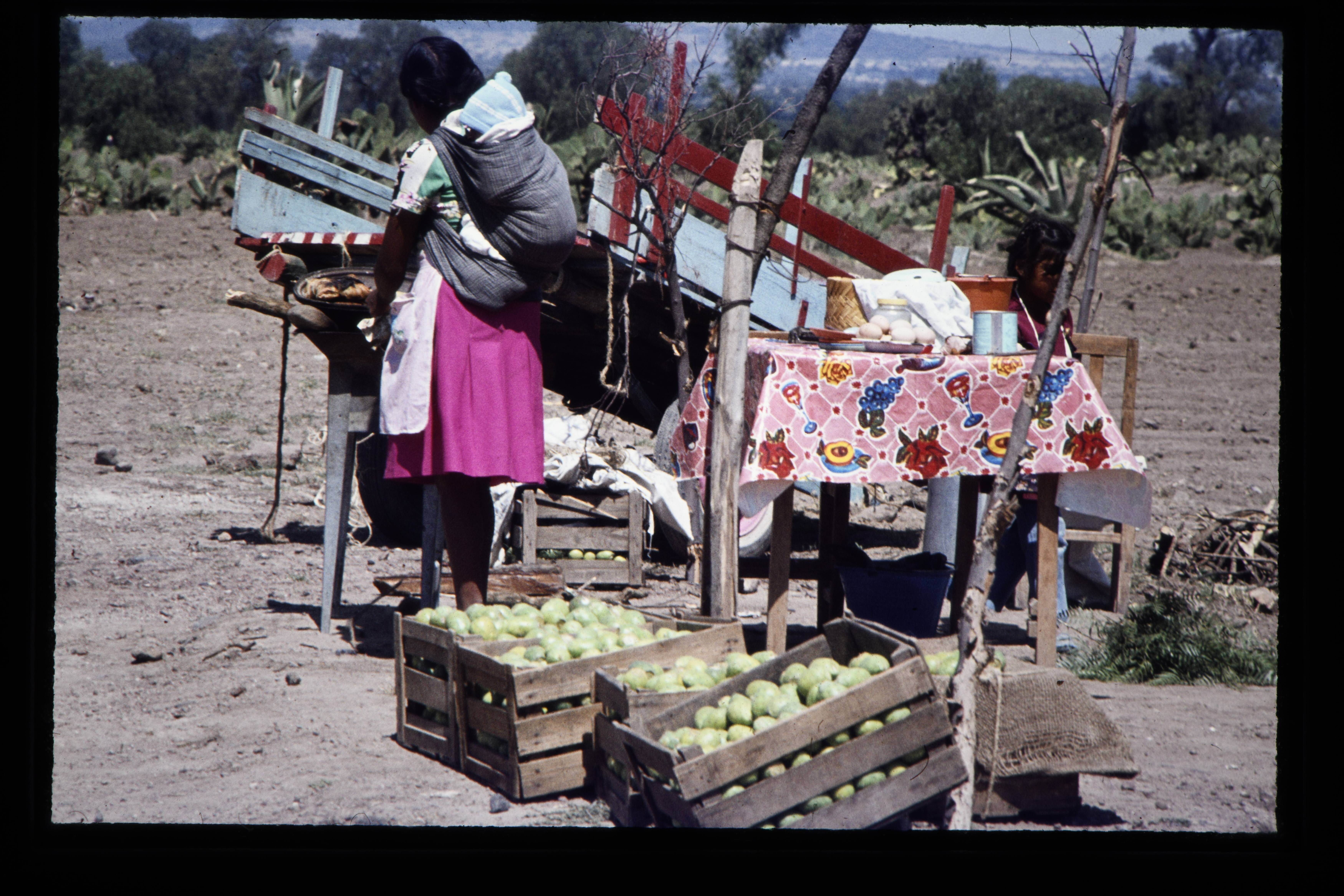 'Een verkoopster langs de kant van de weg, verkoop v...