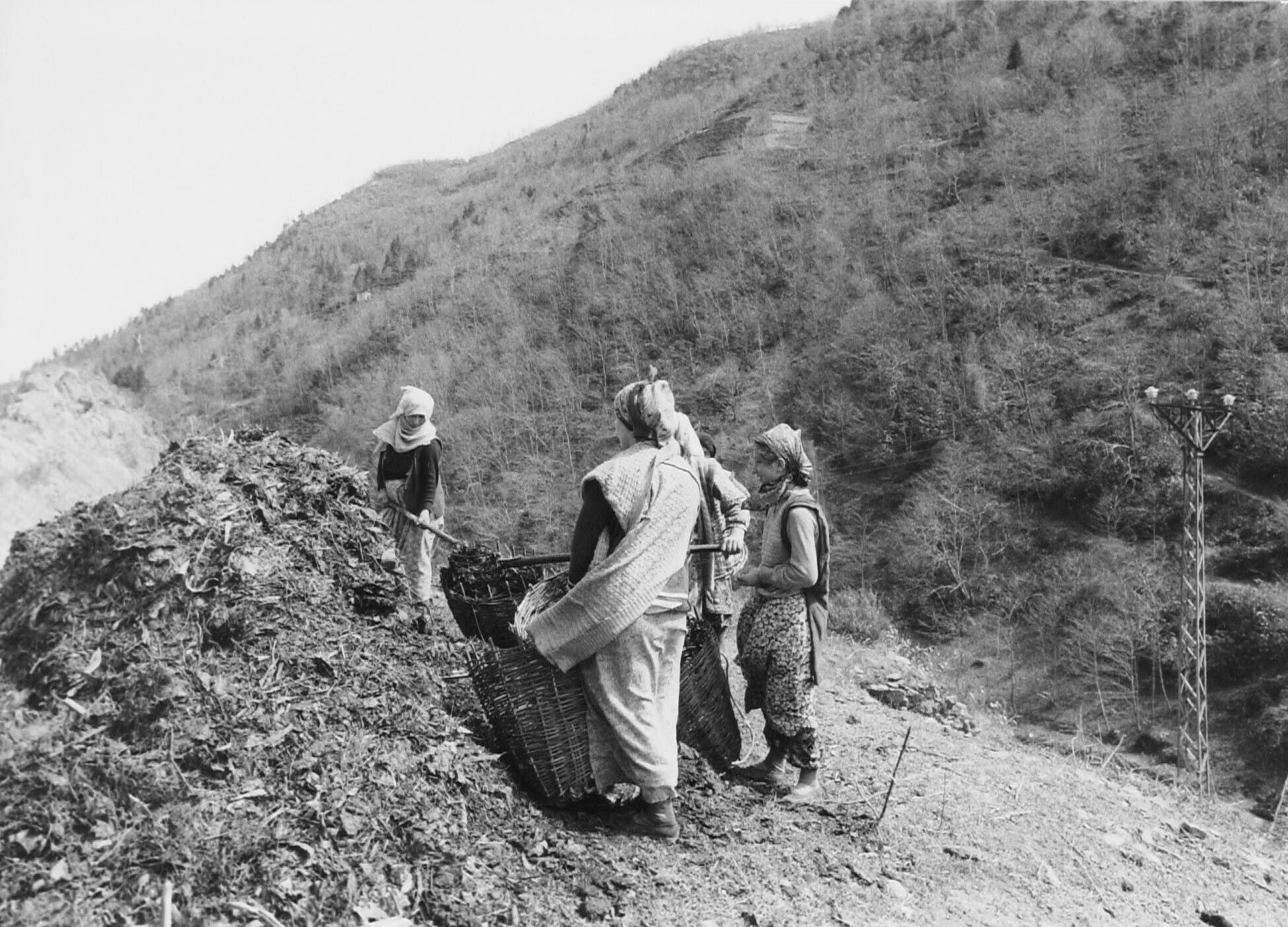 Omgeving Hopa, vrouwen laden manden met compost. Het...