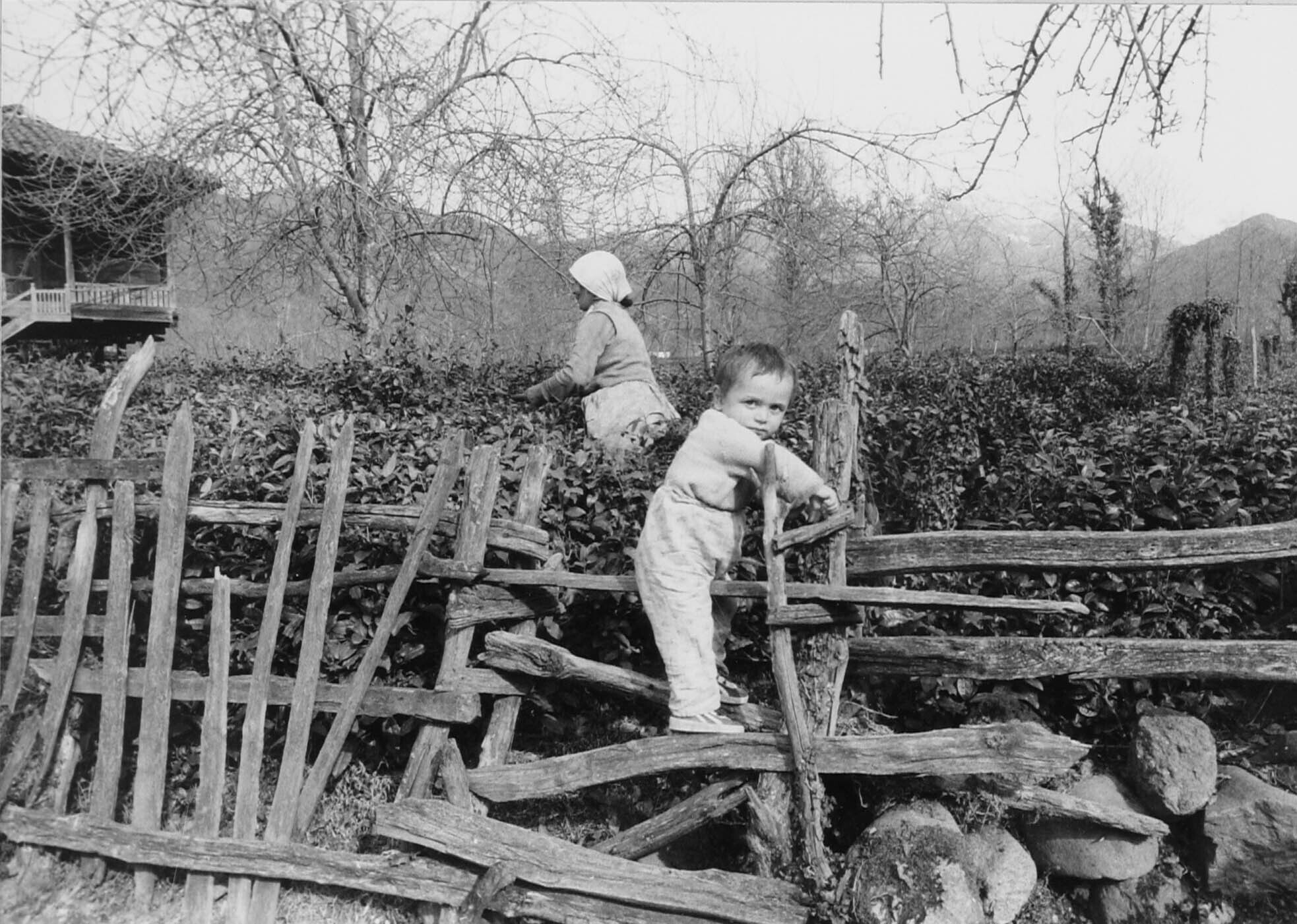 De theetuinen grenzen direct aan het voorerf, vrouw ...