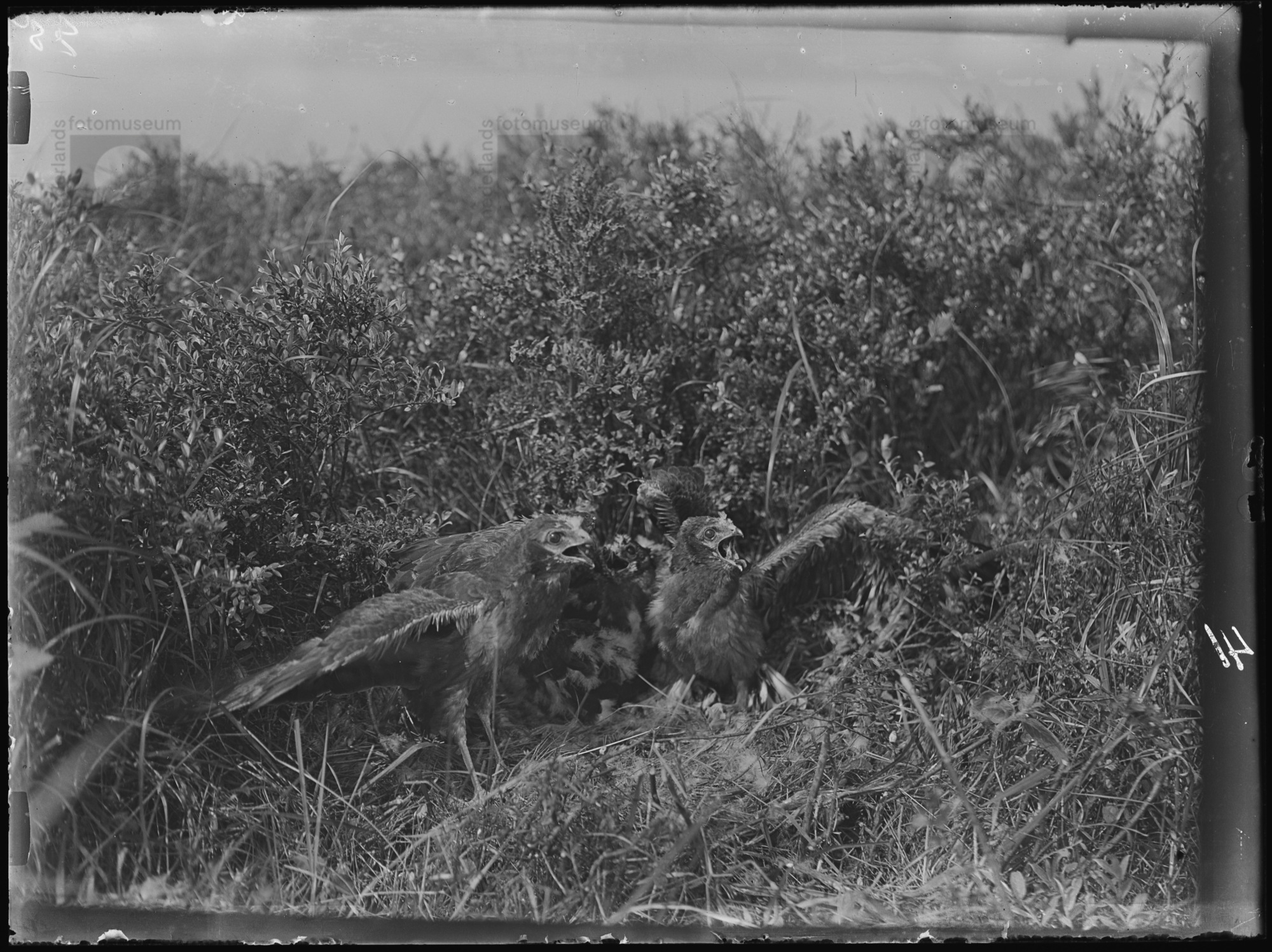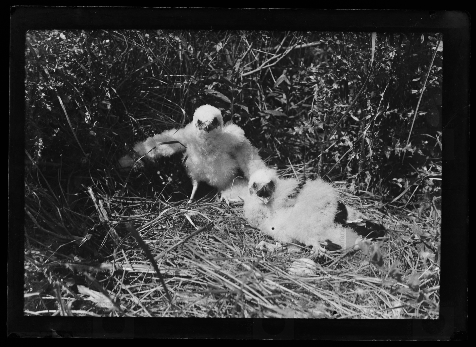 Jonge Grauwe kiekendieven in nest, De Krim (1923)