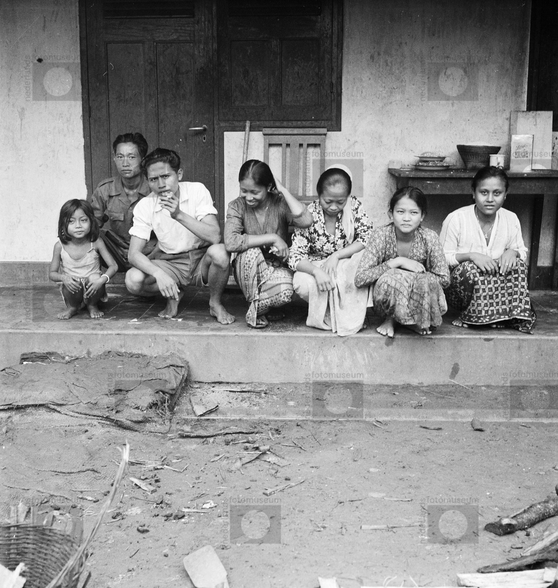 Vrouwen poseren zittend op een veranda, Indonesië (1...