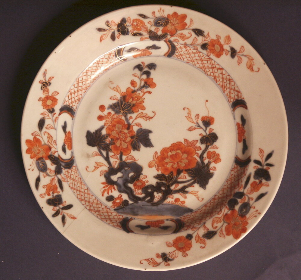 2 porseleinen borden, Imari, met een decor van bloem...