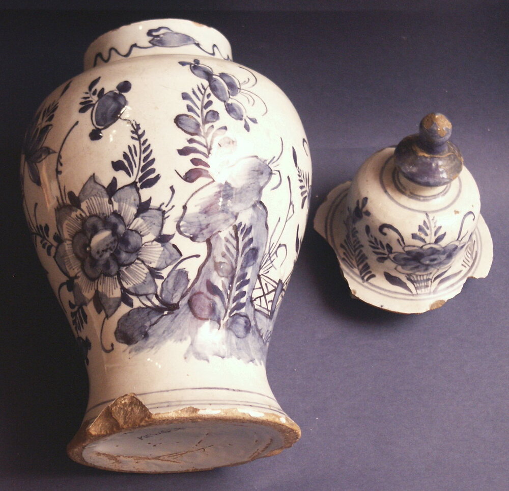 fayence dekselvaas, Delft.