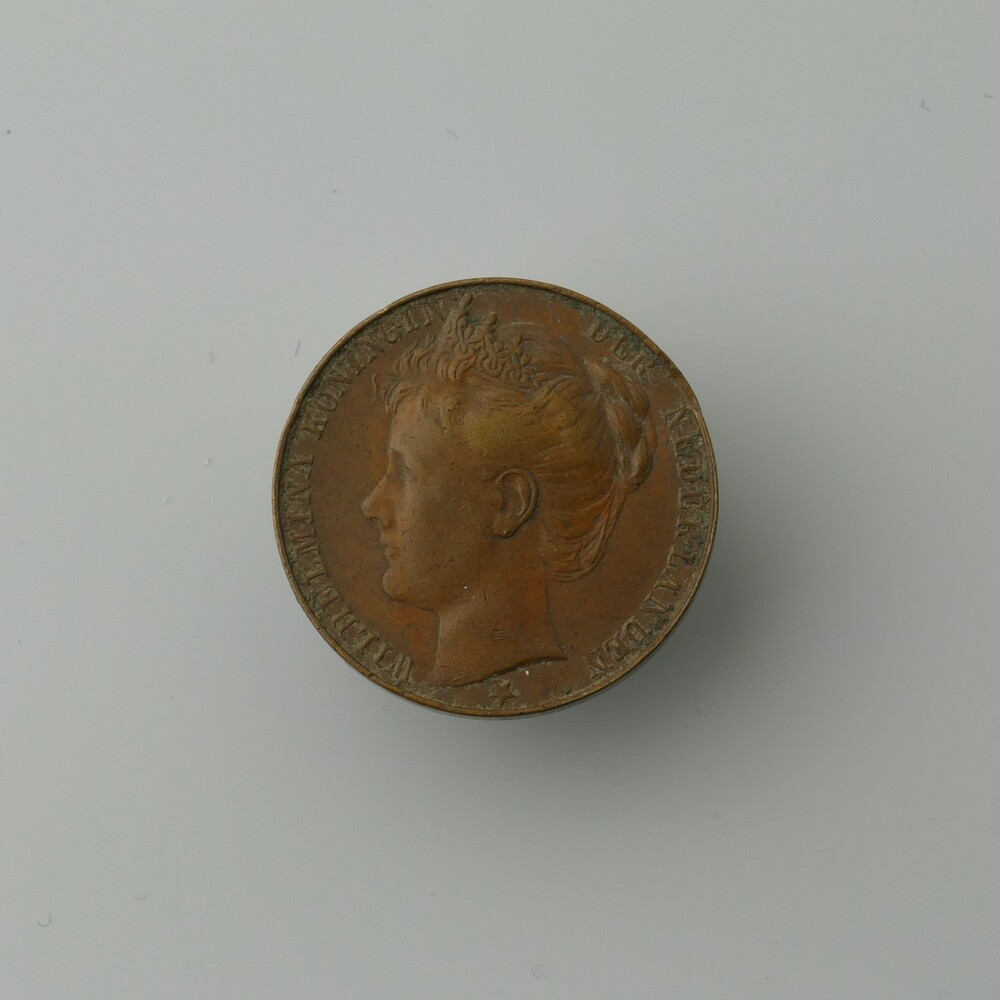 bronzen legpenning Inhuldiging Kon. Wilhelmina