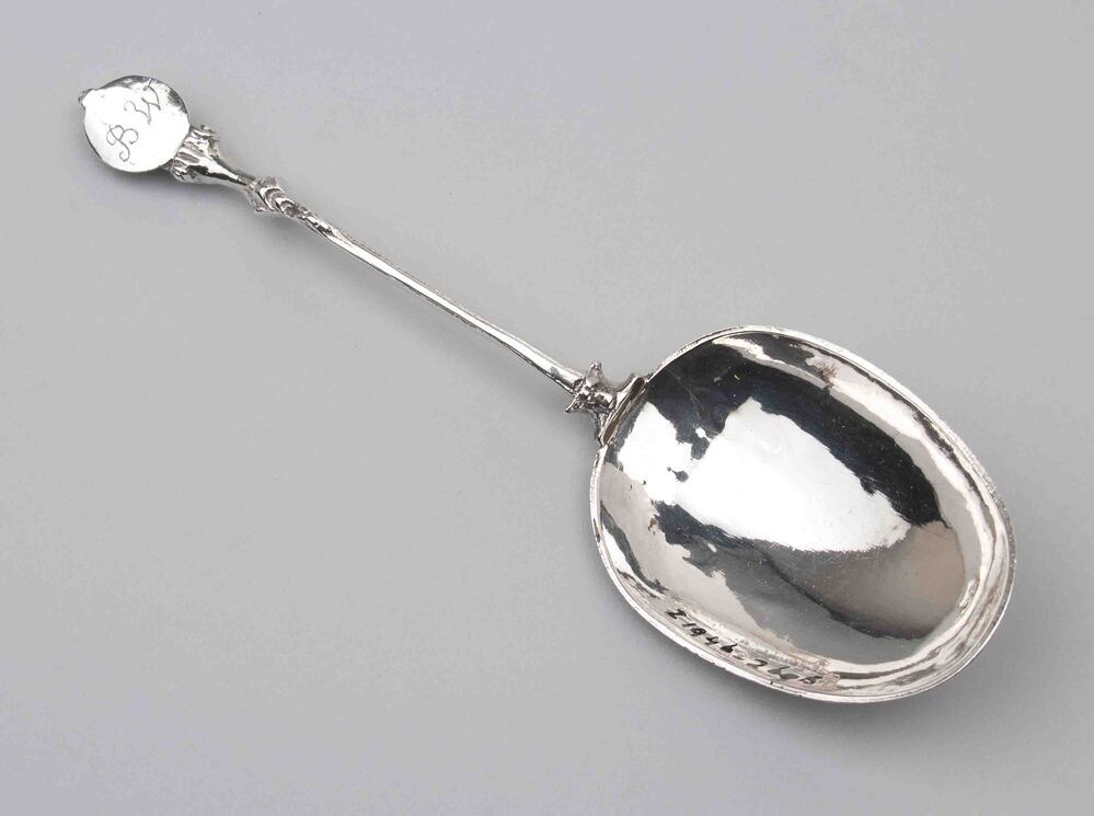 Zilveren lepel waarop ingepunt J.D.K.