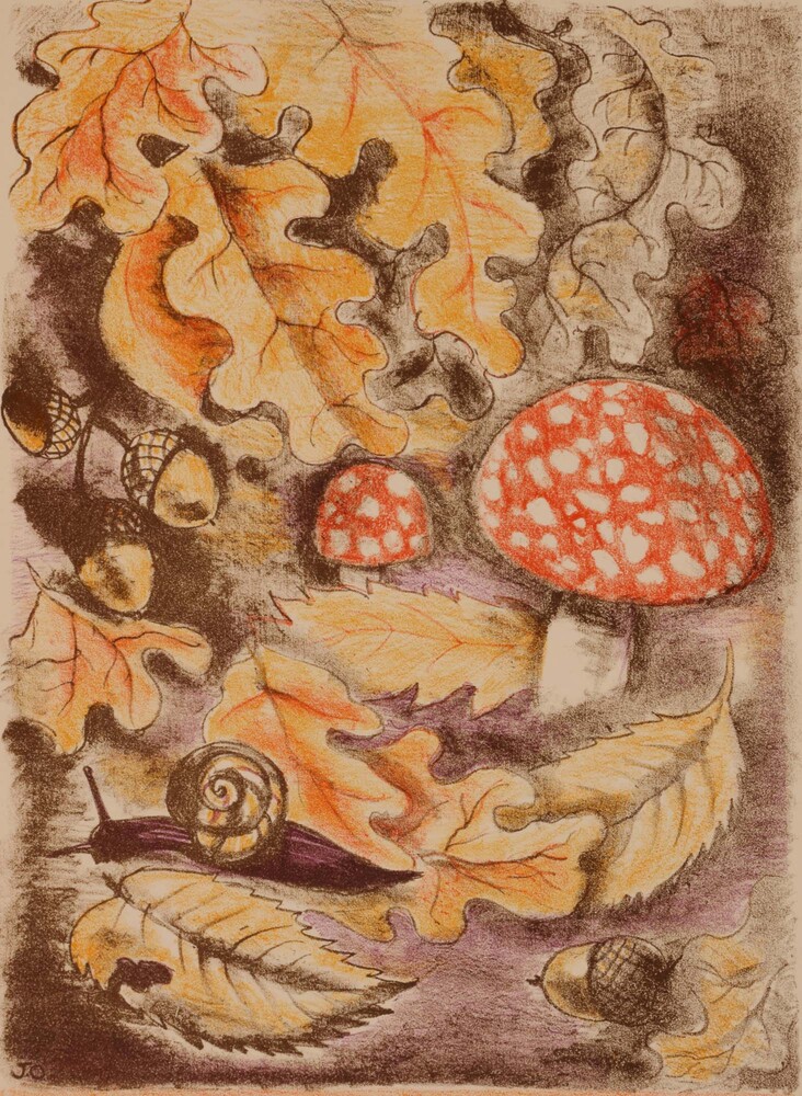 kalender - Paddestoelen en herfstbladeren
