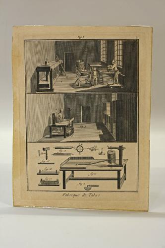 Gravure tabaksproductie (pag. 5) uit Encyclopedie Me...