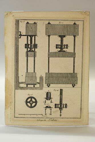 Gravure tabaksproductie (pag. 1) uit Encyclopedie Me...