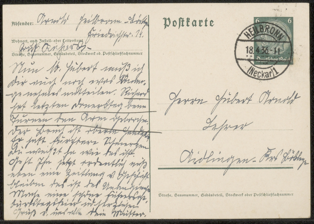Briefkaart aan Hubert van Ella aan ?? d.d. 18-04-1939