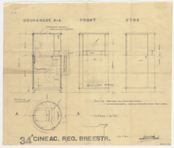 Doorsnede, Front en Zijde van de Kassa Cineac Reguli...