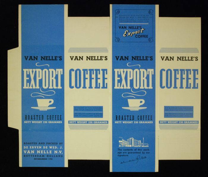 Blauw en wit, kartonnen pak VAN NELLE PABLO KOFFIE, ...