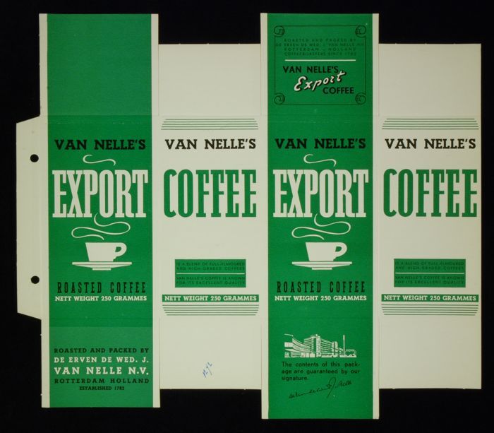 Ongevouwen, groen en wit, kartonnen pak VAN NELLE'S ...