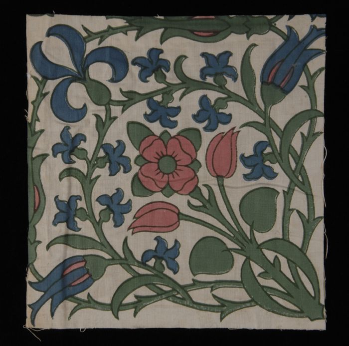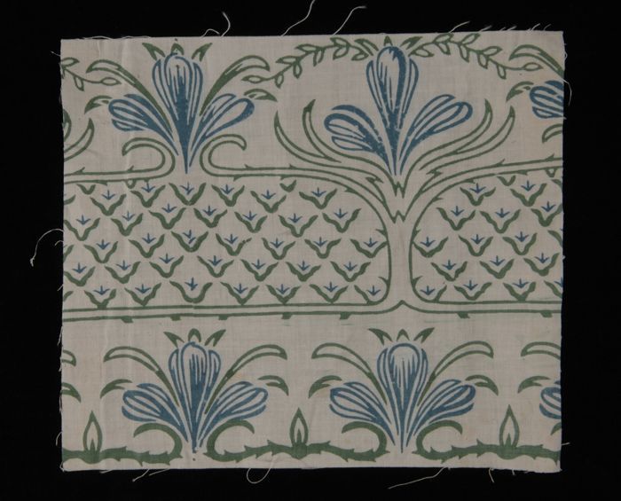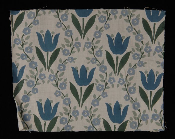 Stofstaal, katoen met dessin van tulpen en bloemrank...