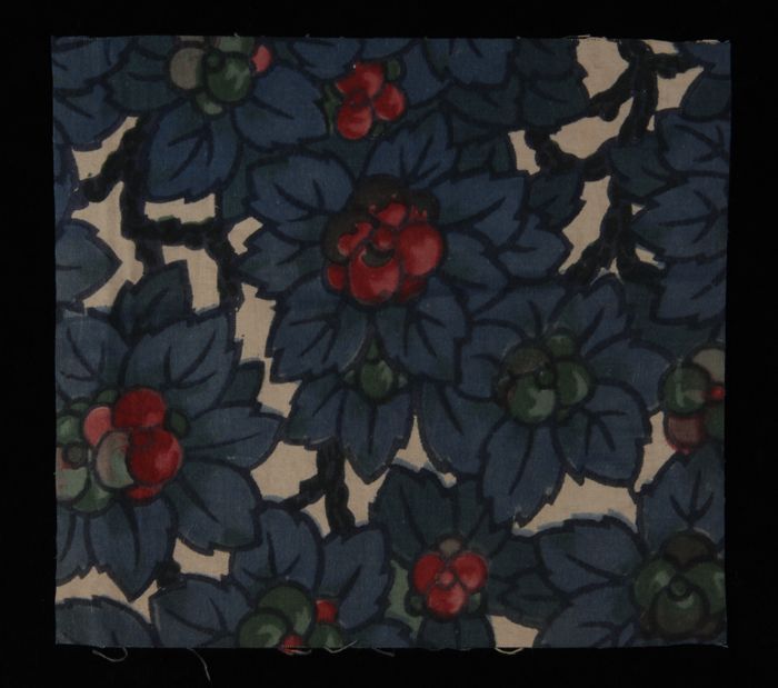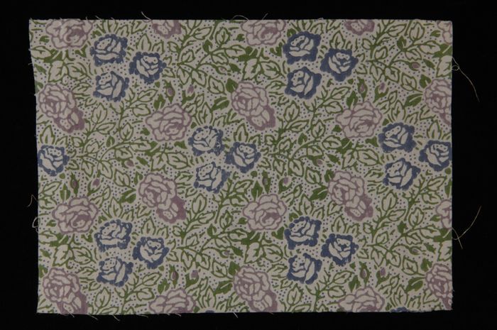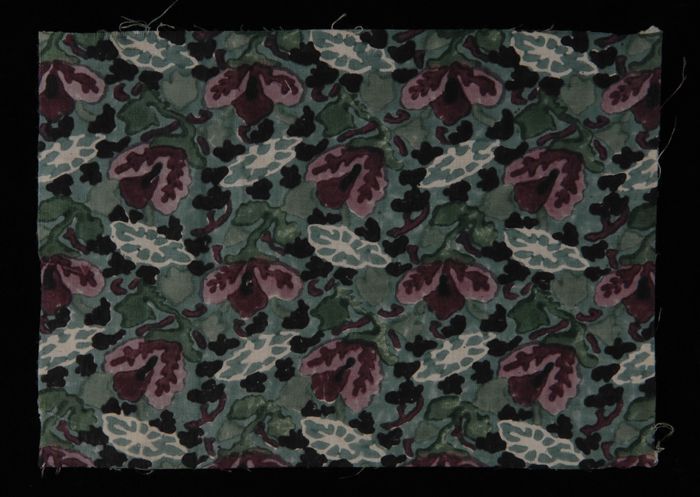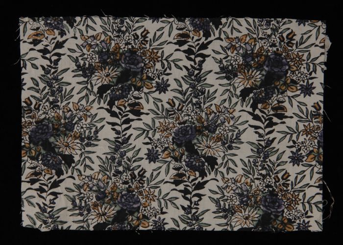 Stofstaal, katoen met dessin van bloemen en bladeren...