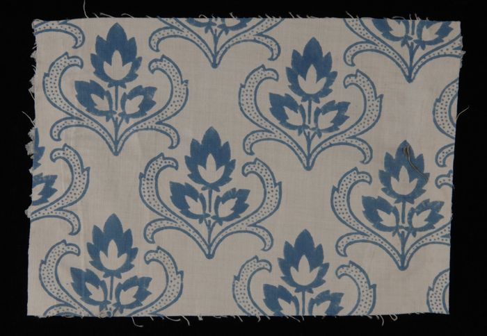 Stofstaal, katoen met dessin met bloemranken in blau...