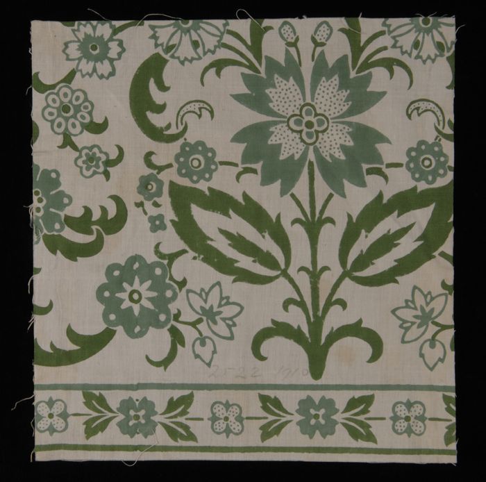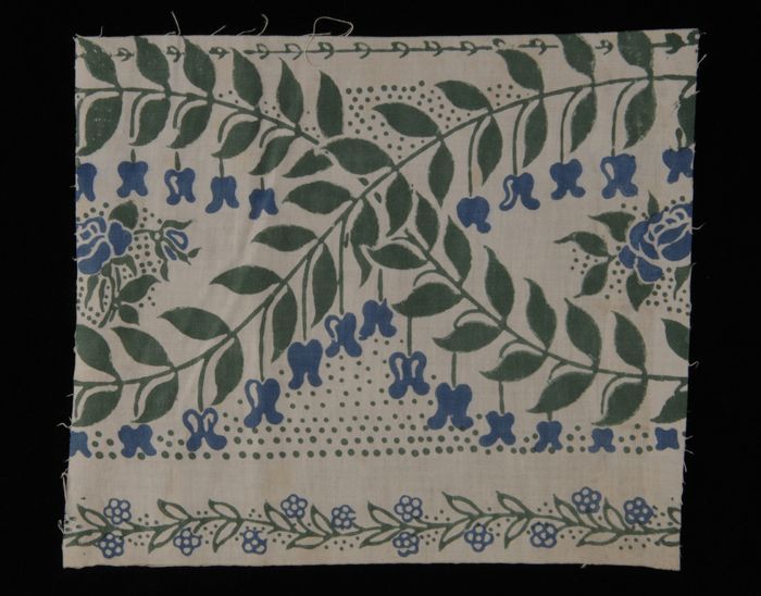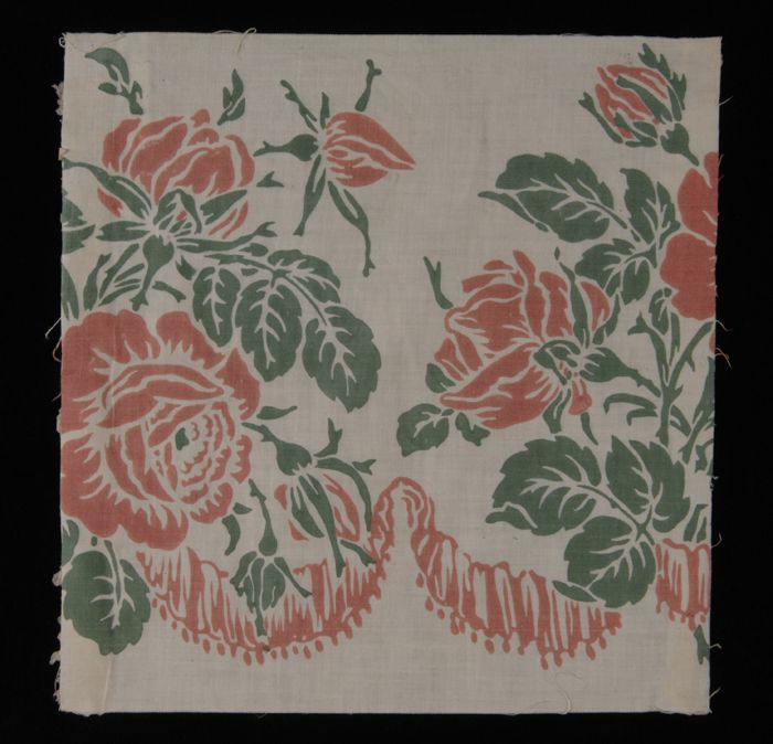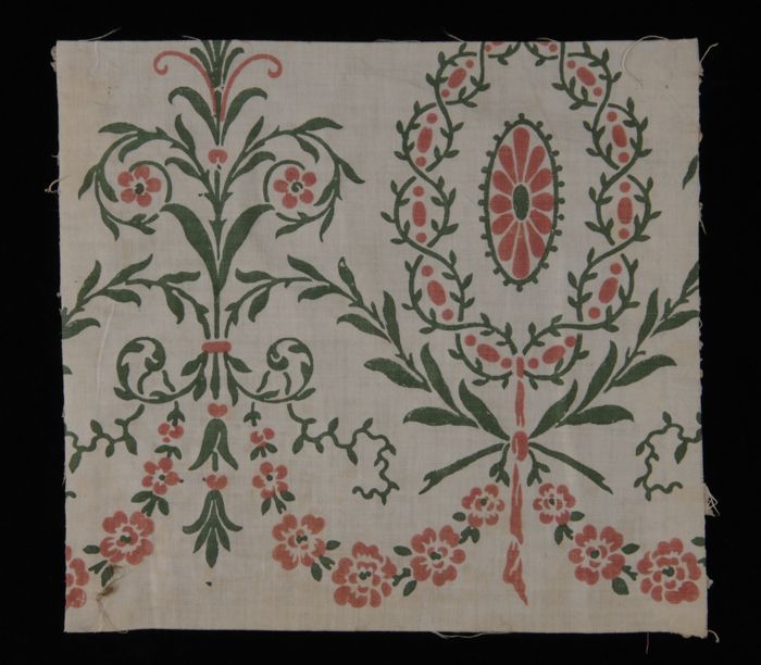 Stofstaal, katoen met dessin met bloemen en guirland...