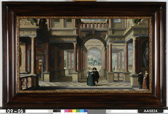 Architectuurfantasie met figuren