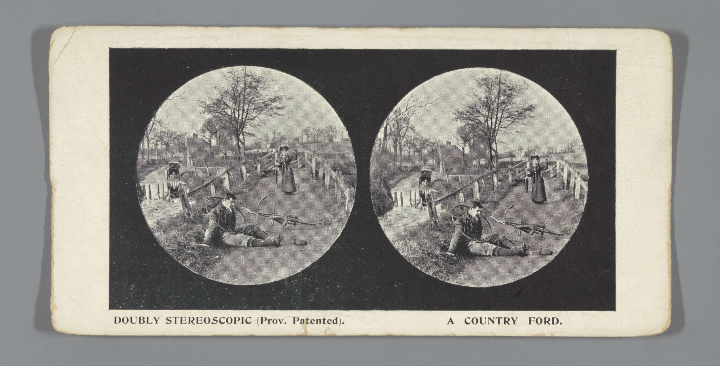 Geënsceneerde voorstelling van gevallen man met fiet...