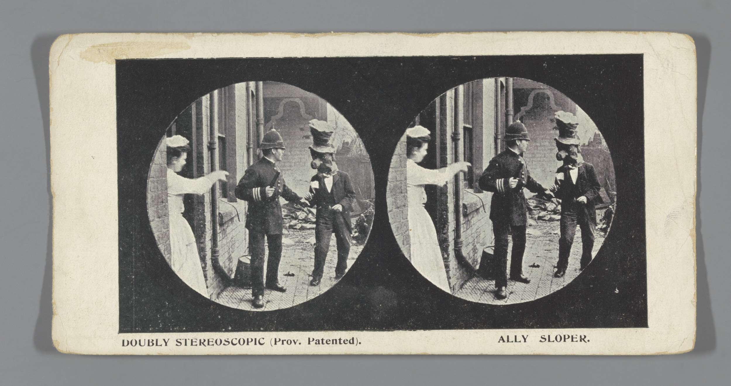 Geënsceneerde voorstelling van Ally Sloper met polit...