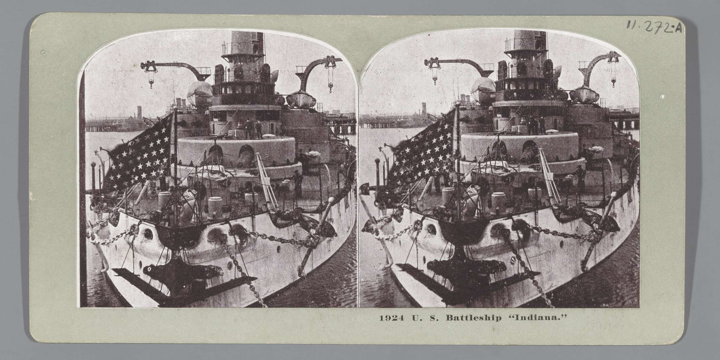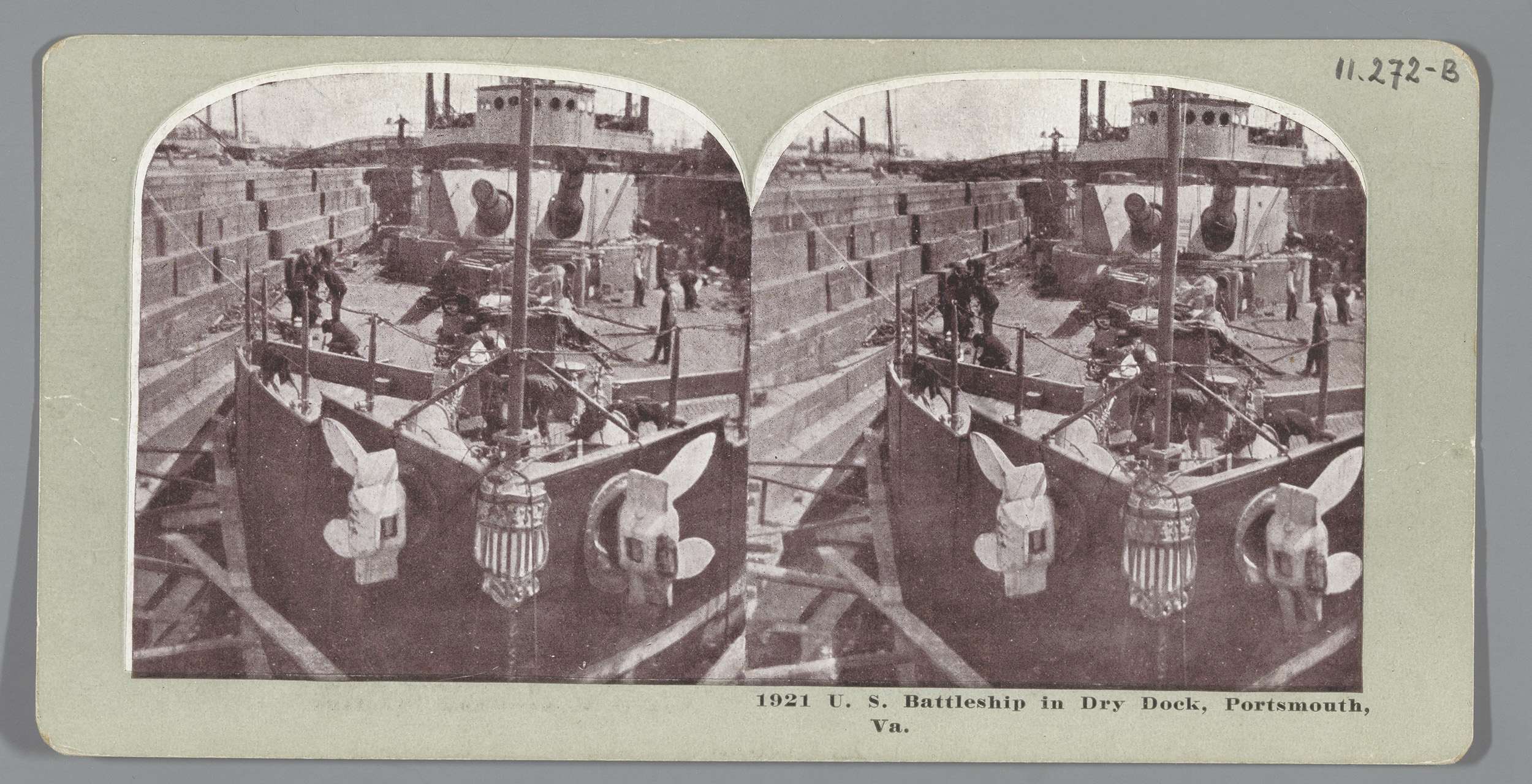 Het dek van een Amerikaans slagschip in Portsmouth, ...