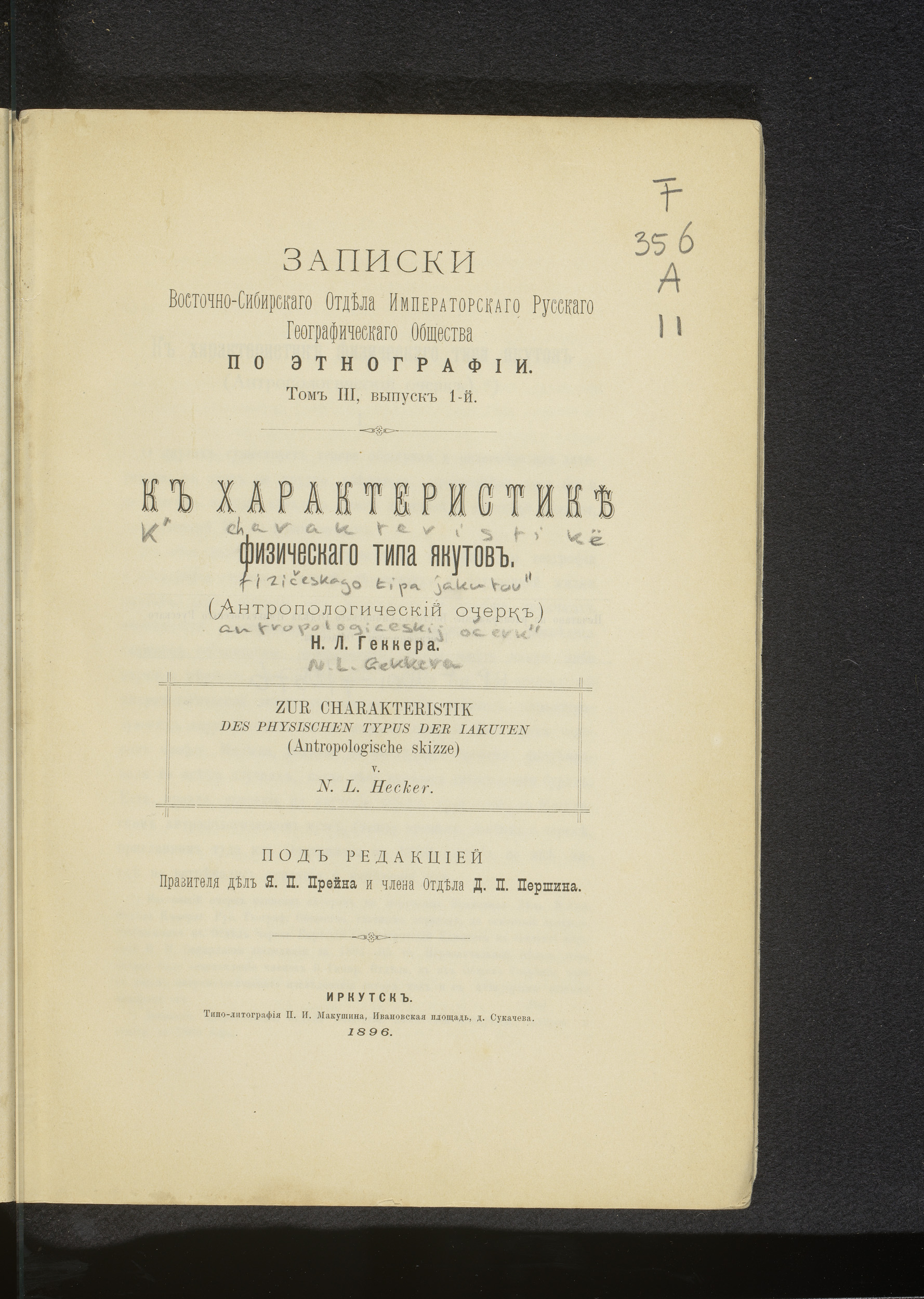 K' charakteristikë fiziceskago tipa jakutov'