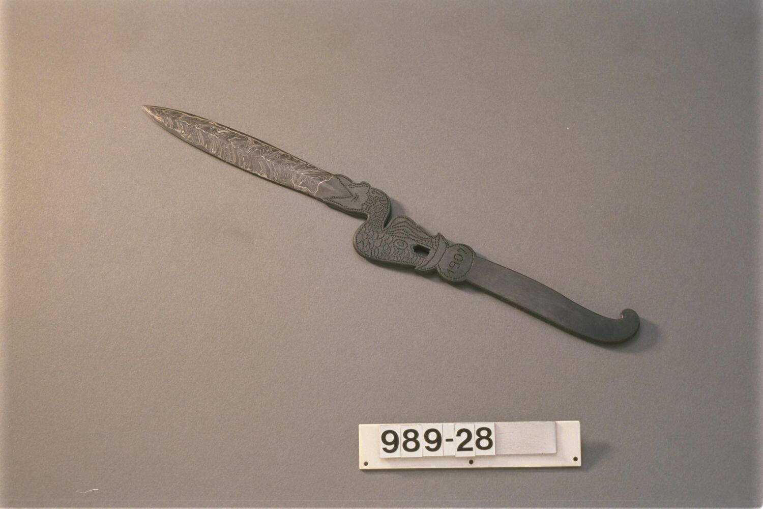 IJzeren briefopener in de vorm van een lanspunt, ver...