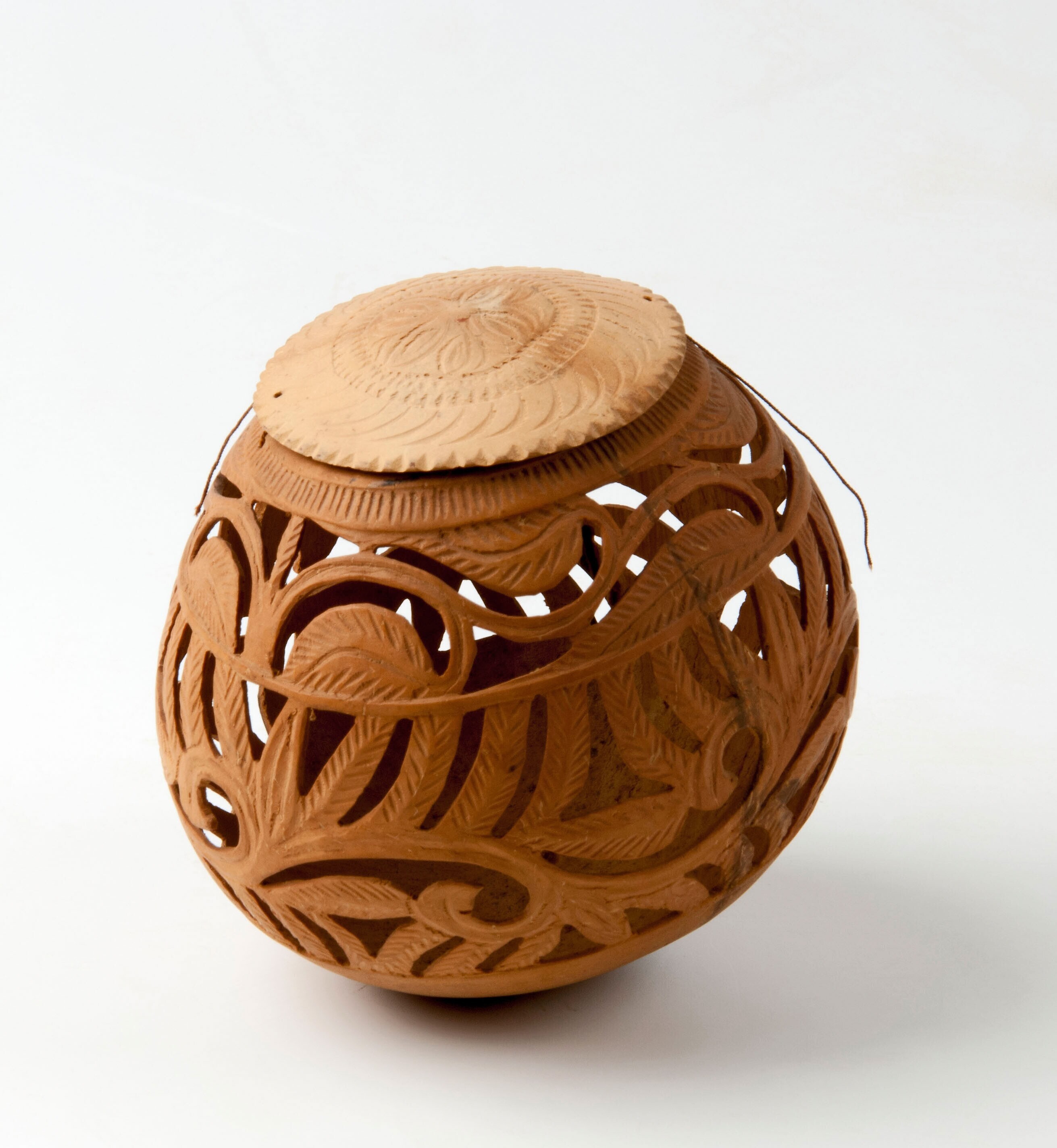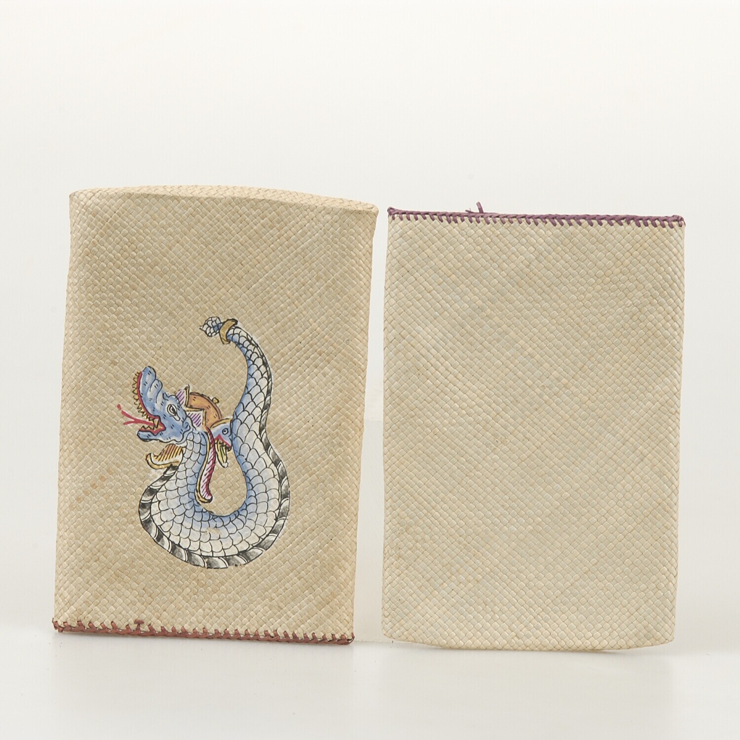 Gevlochten sigarenkoker van pandanblad met daarop vo...