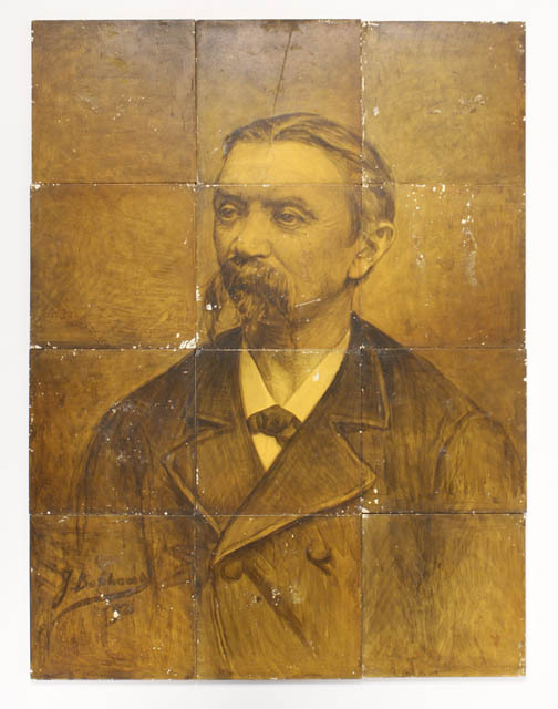 Tegeltableau betaand uit 12 tegels met portret van e...
