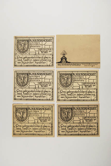 Visitekaartjes met daarop de tekst Firma H. G. Bokho...