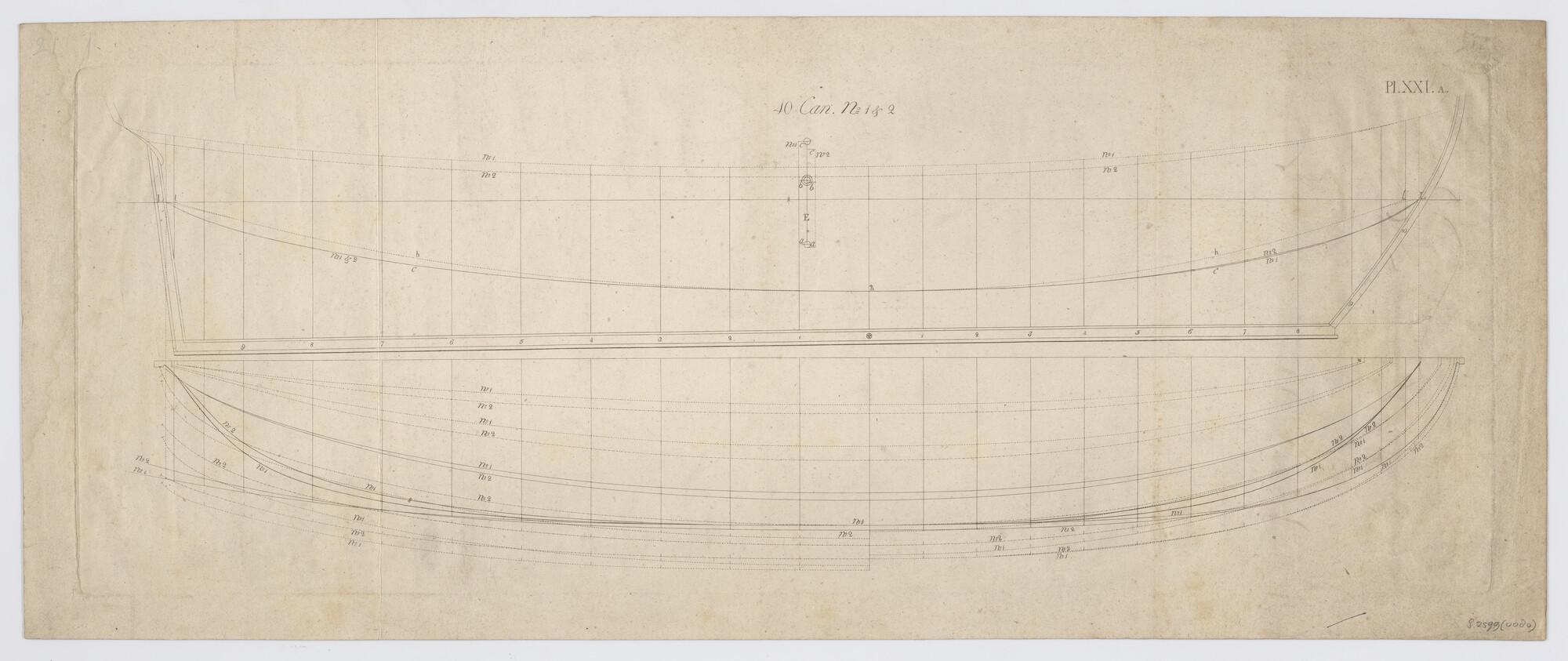 Lijnenplan van een oorlogsschip van 40 stukken