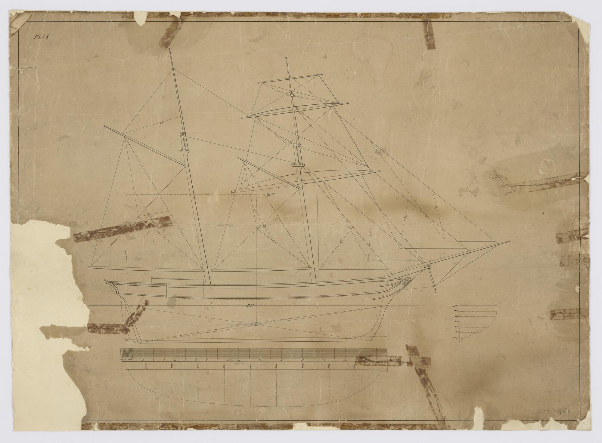 Het galjootschip Harlingen in het ijs in Straat Davi...