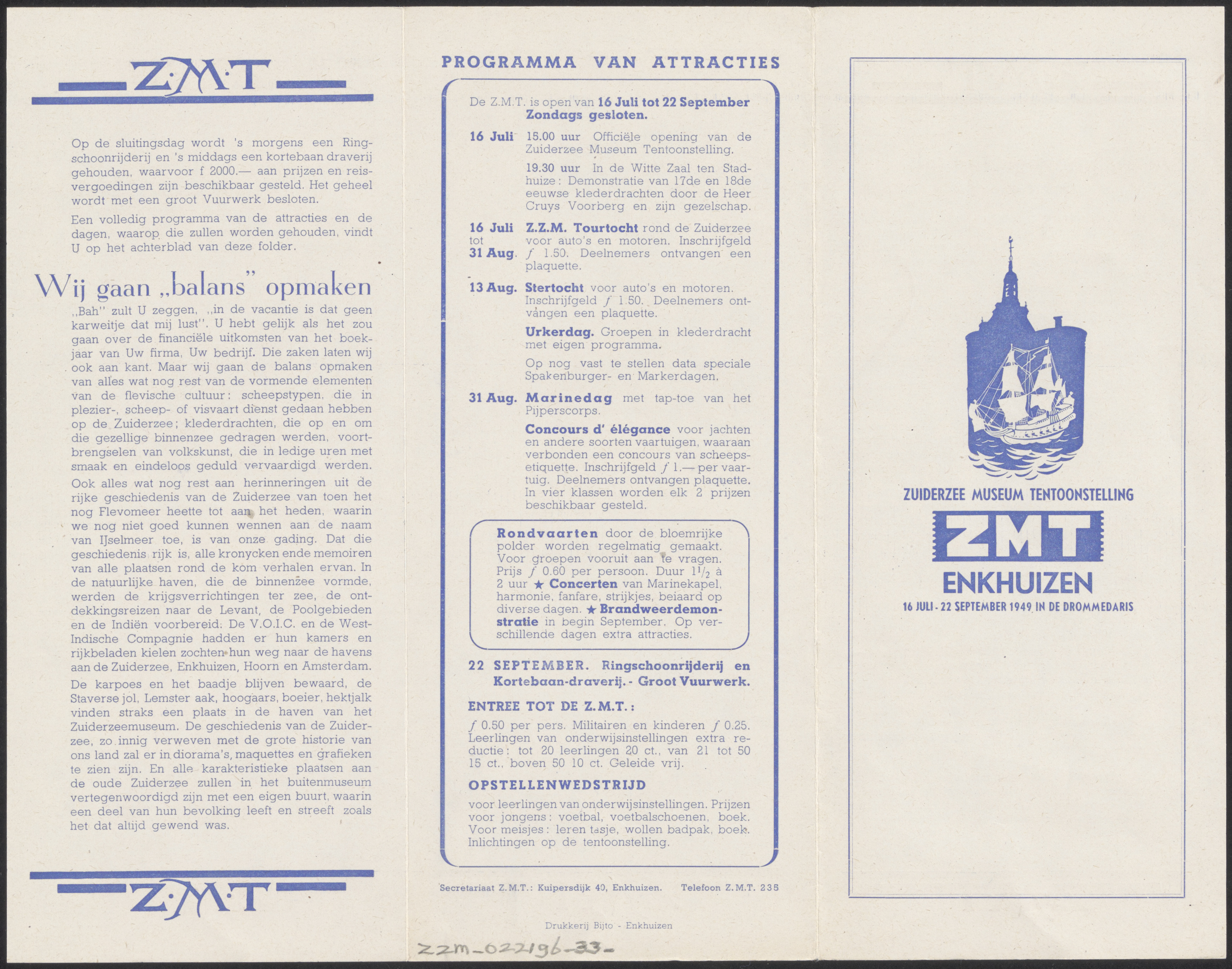 Nederlandse folder van de ZMT Enkhuizen, 16 juli - 2...