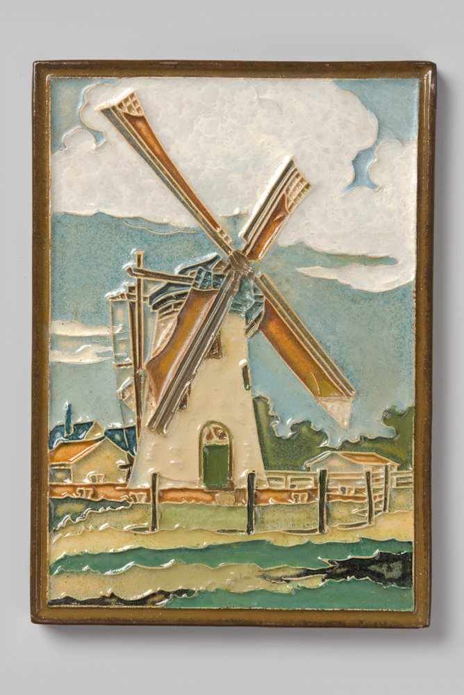 Tegel in cloisonné-techniek, met voorstelling: Koren...