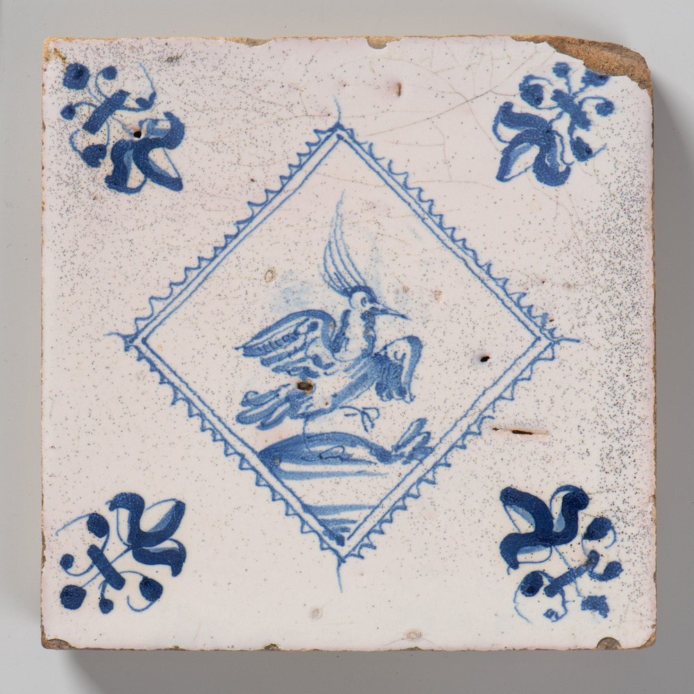 tegel van keramiek met tinglazuur, voorstellende: vo...