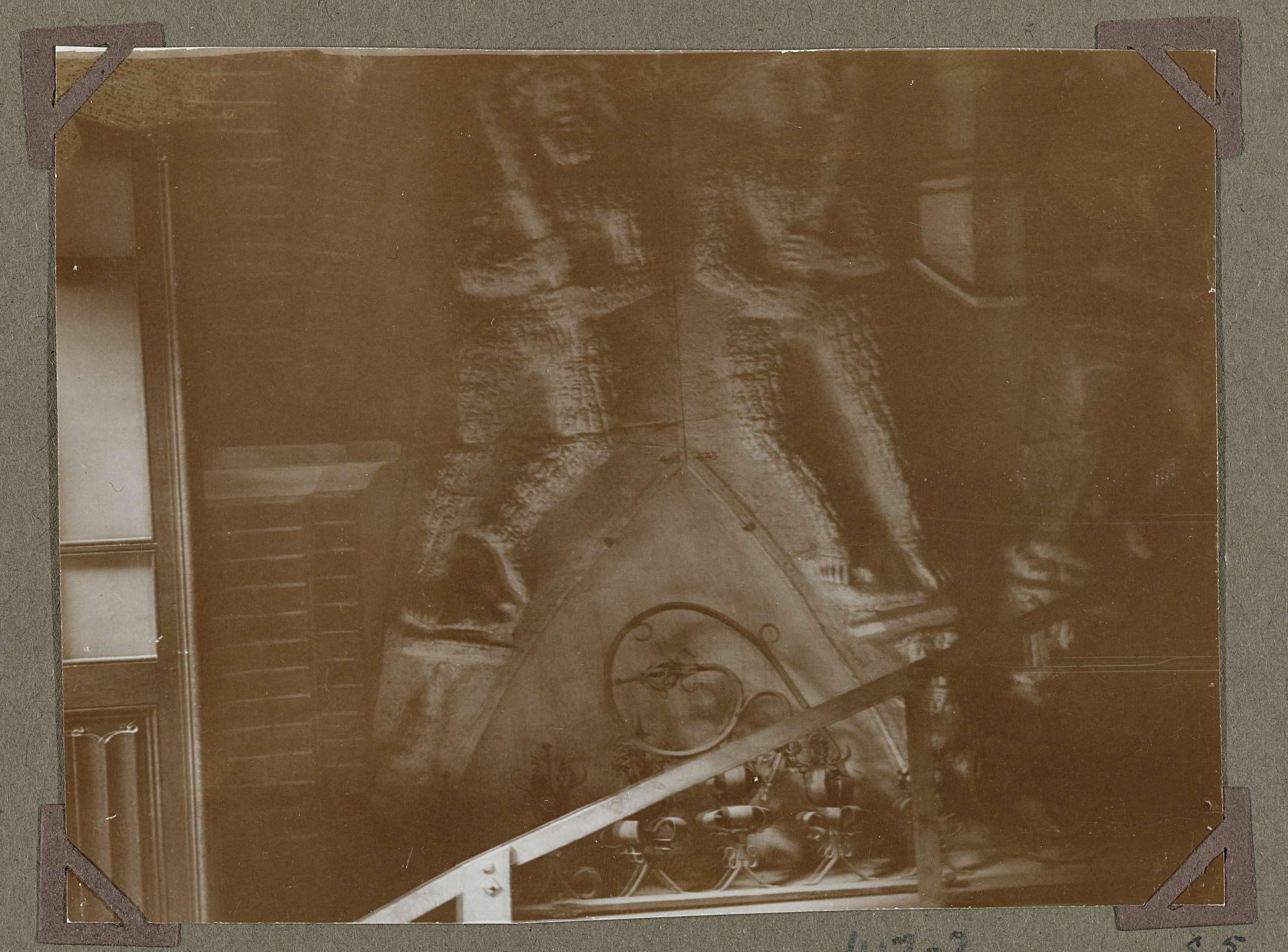 Twee sculpturen in het souterrain in 1929.