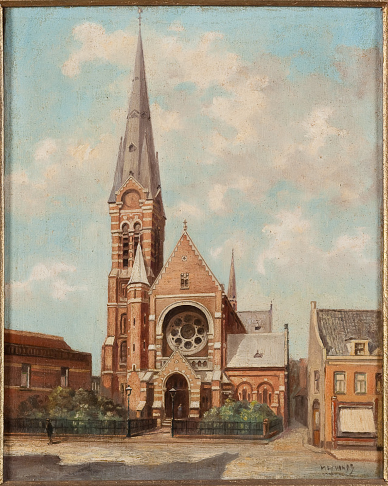 schilderij, olieverf op doek, voorstellend de RK Bar...