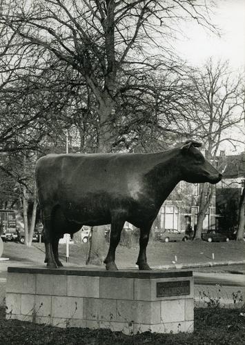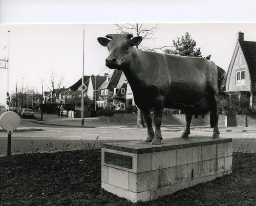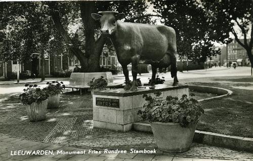 Foto in zwart-wit van het standbeeld "Us Mem" te Lee...