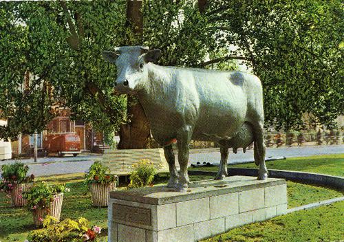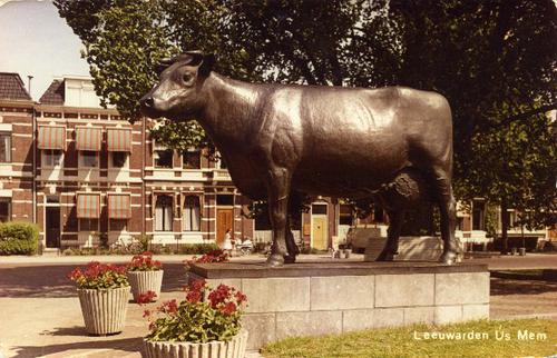 Prentbriefkaart in kleur van het standbeeld "Us Mem"...