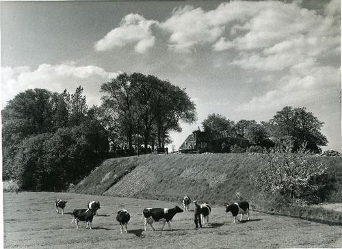 Foto in zwart-wit van de terp van Hogebeintum door J...