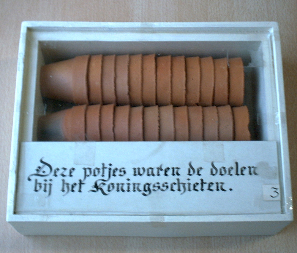 Schietschijven in de vorm van bloempotjes zoals gebr...