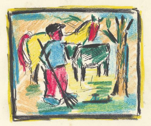 Staande figuur met paard en koe