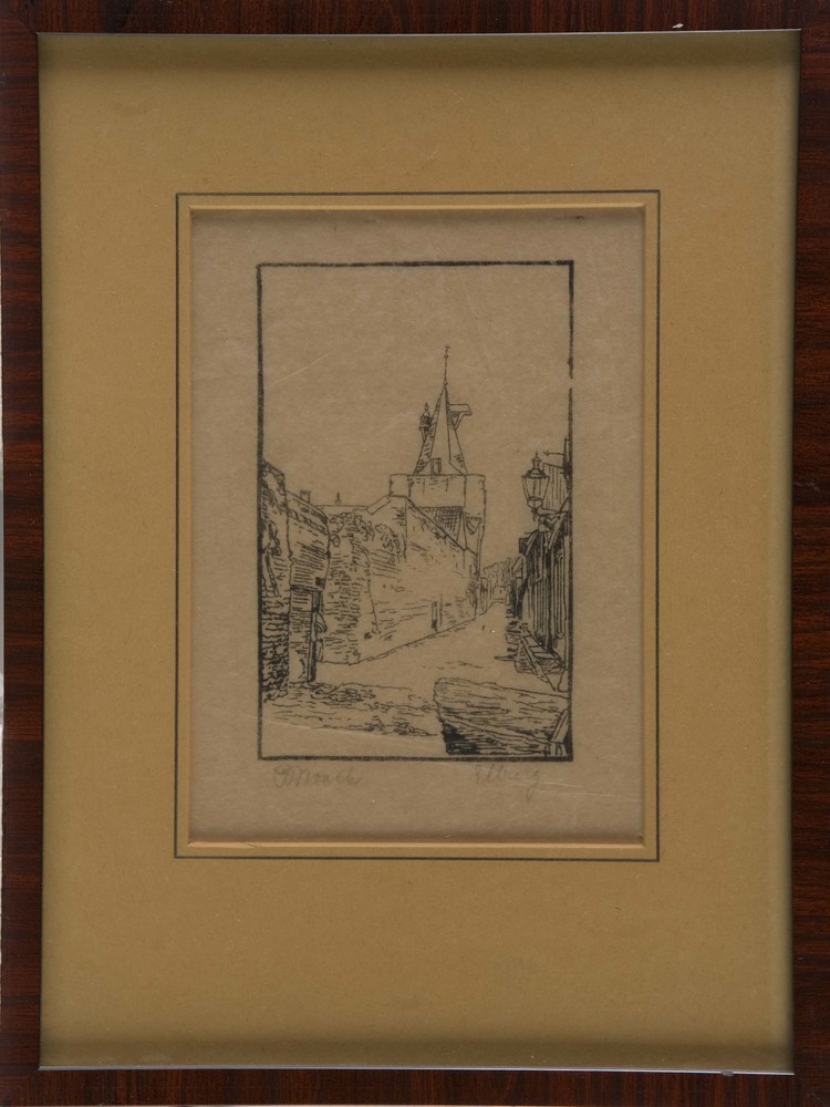 Tekening, voorstellende een straatje in Elburg, verv...