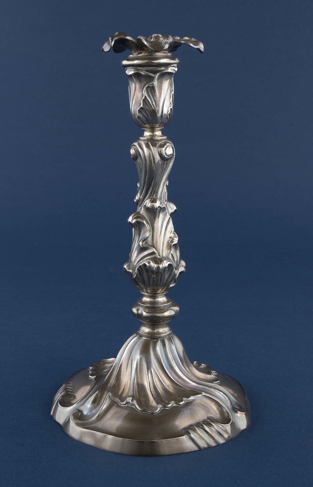 Kandelaar van zilver op brede voet en houder met blo...