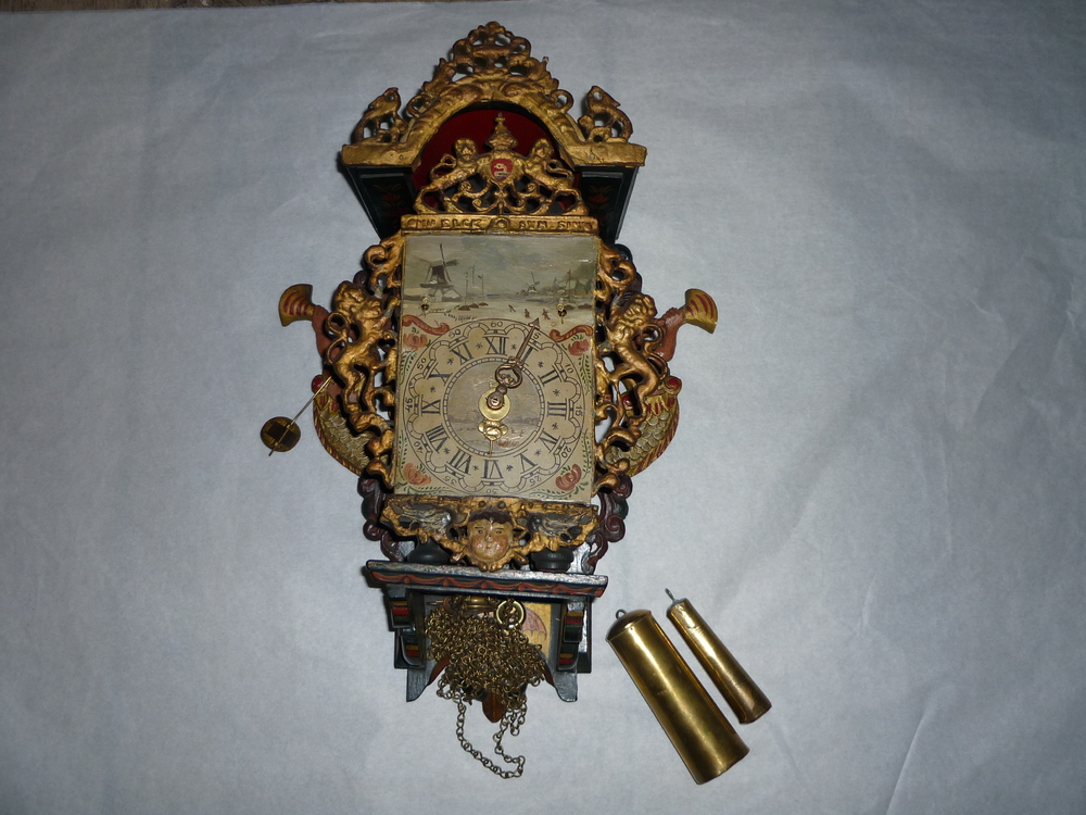 Wandklok met gewicht (A t/m C), klein model, schilde...