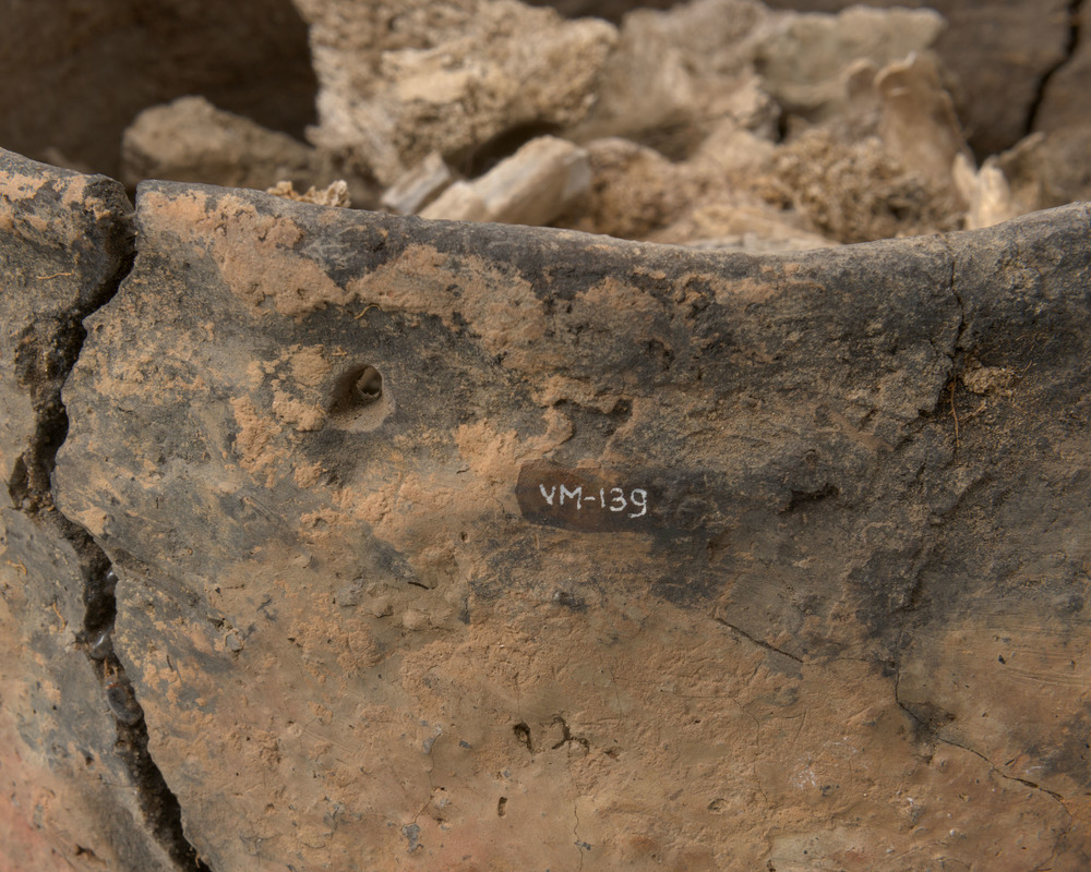 Urn, type Hallstatt, van handgevormd aardewerk met v...