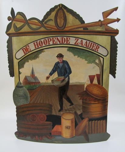 Metalen reclamebord of winkelbord 'De hoopende zaaij...