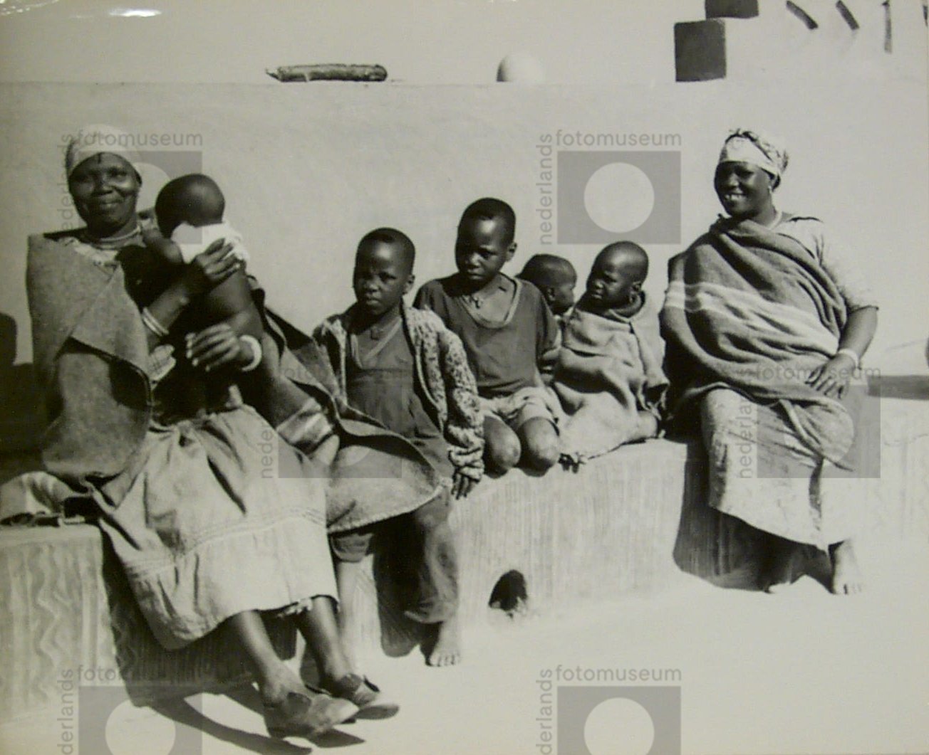 Ndebele moeders en hun kinderen in de Speelman-kraal