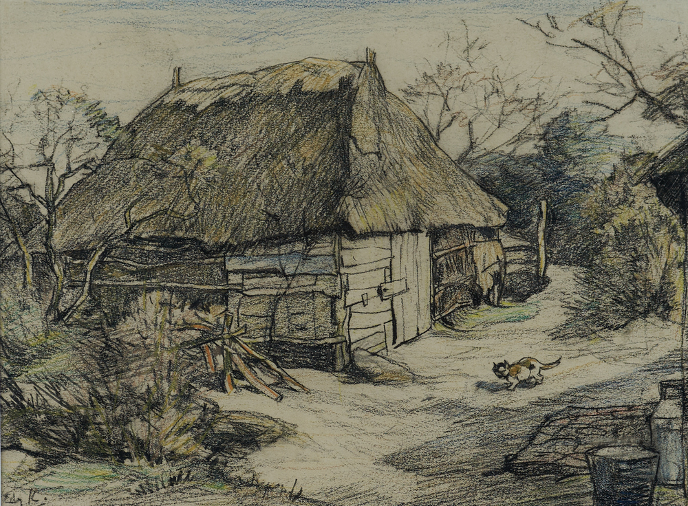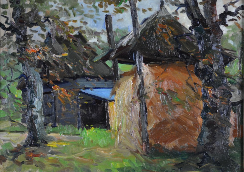 Hooimijt, schuur en boom