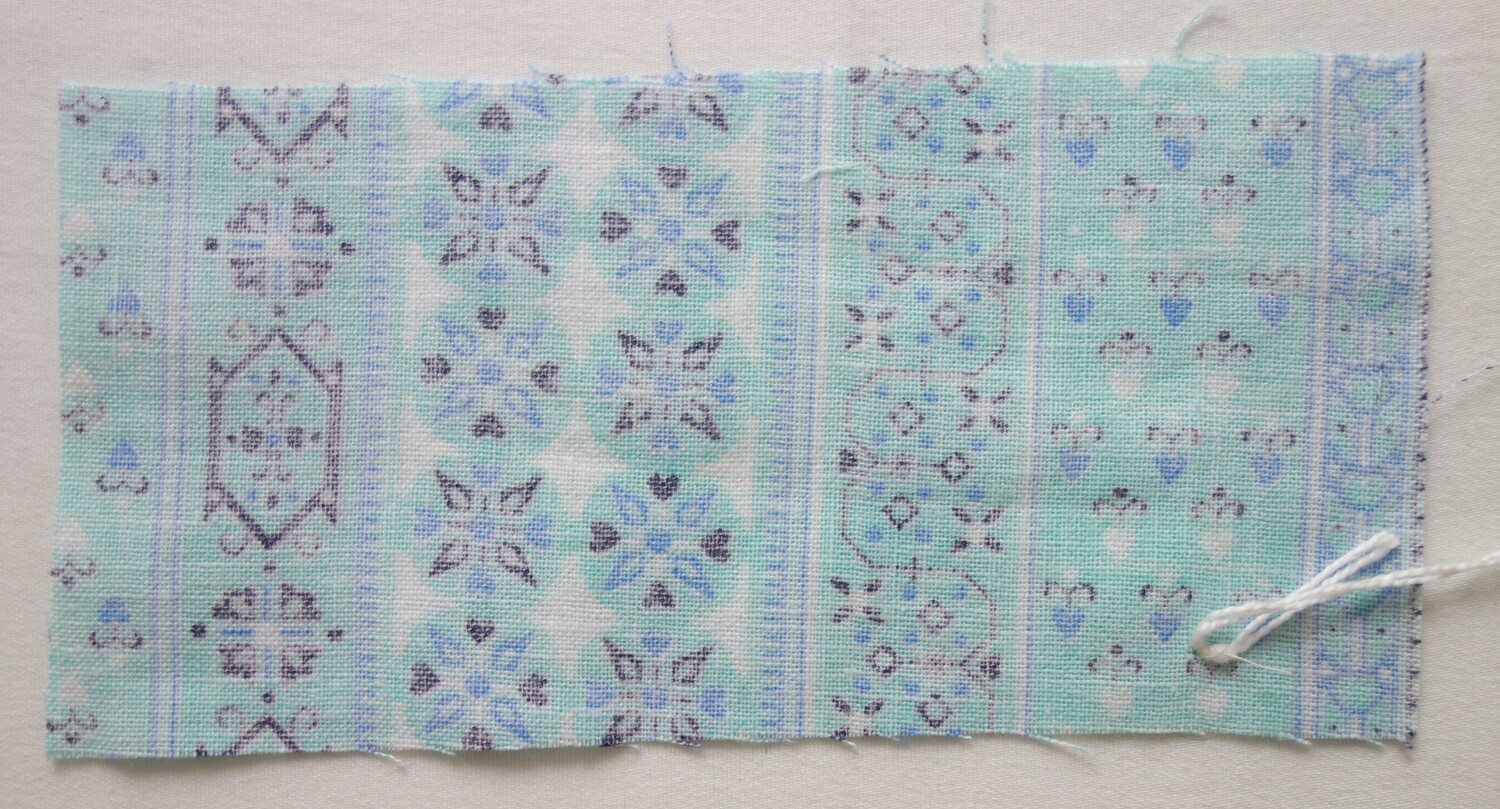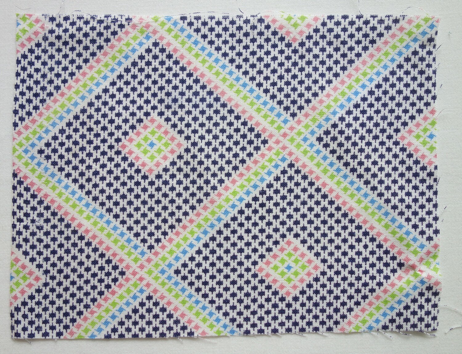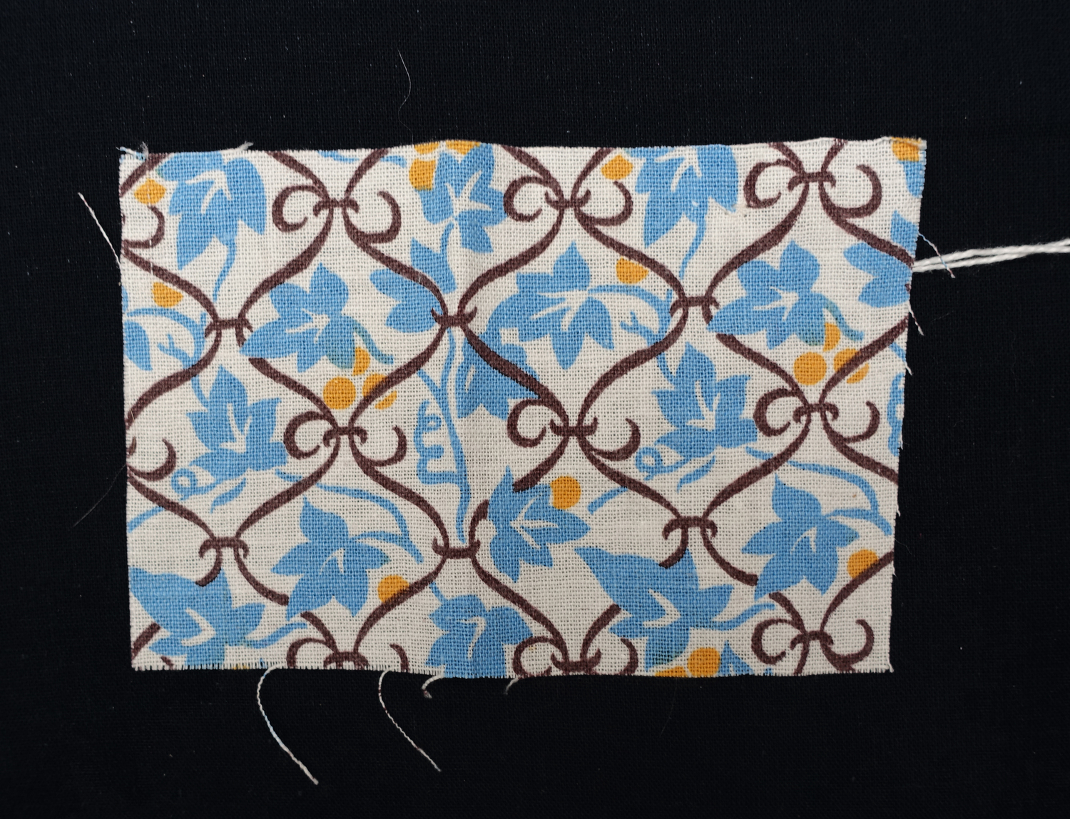 Factory woven and printed cloth hand stitched (running stitch) appliqué (1)