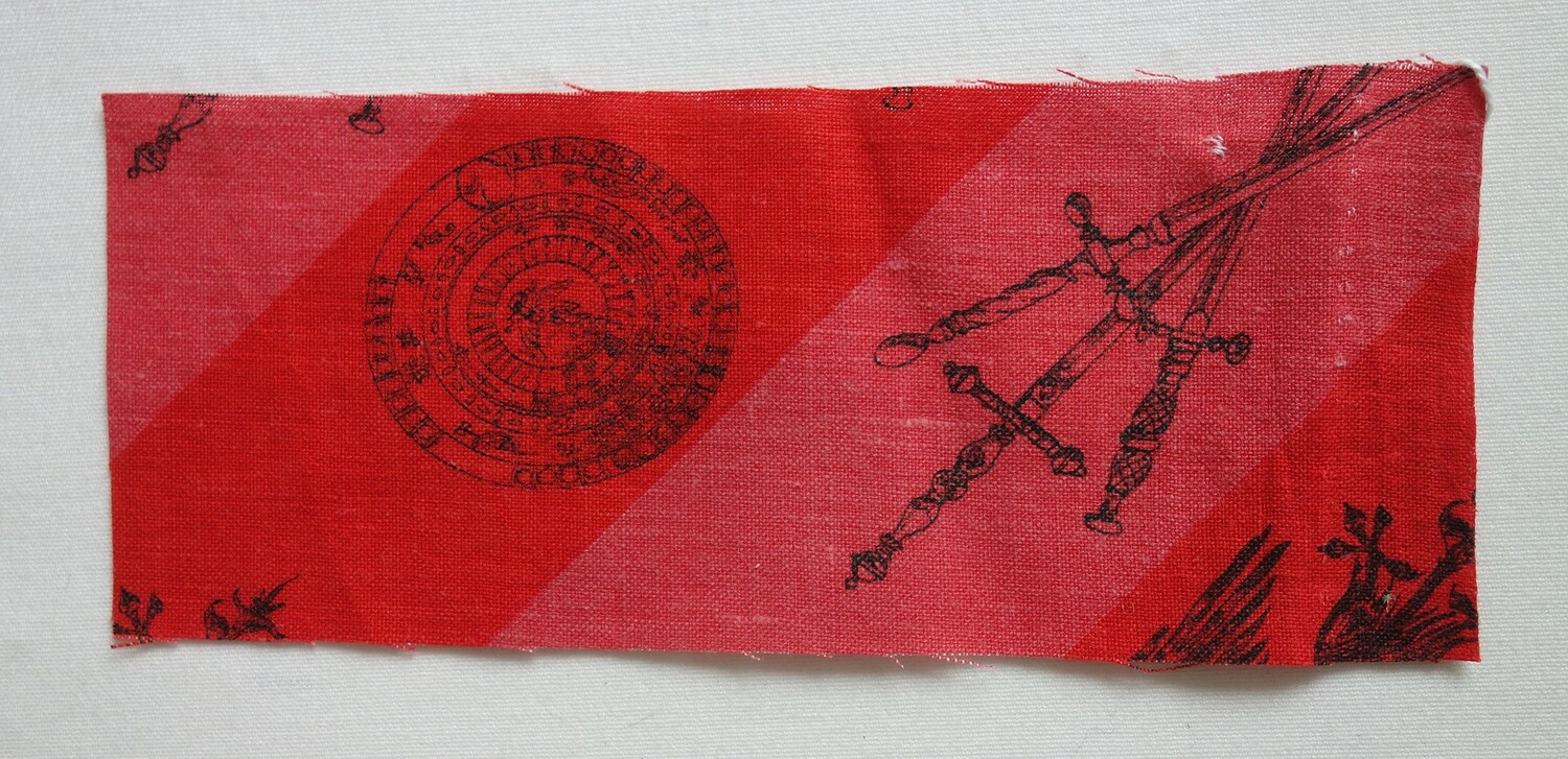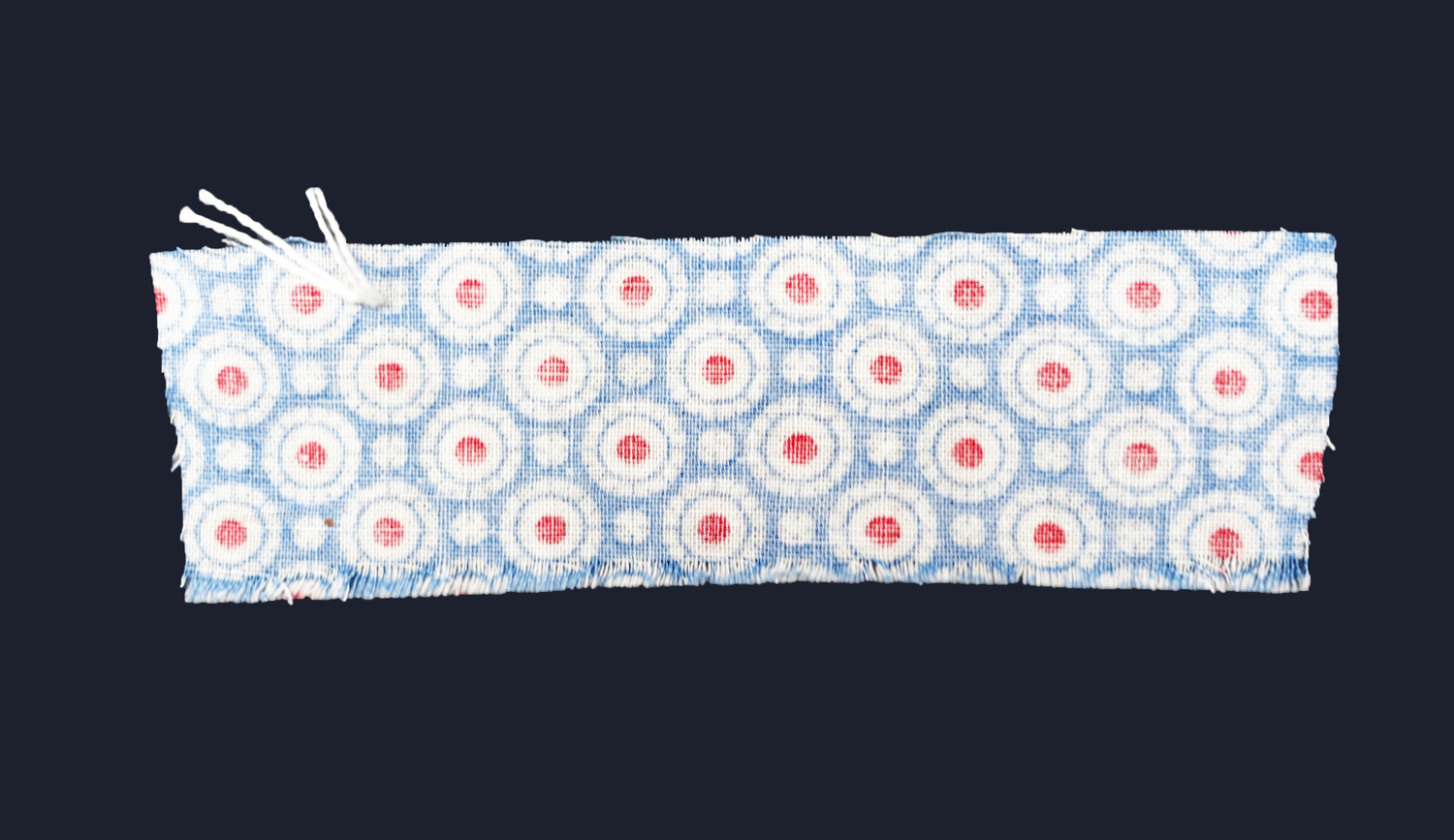 Factory woven and printed cloth hand stitched (blanket stitch) appliqué (1)